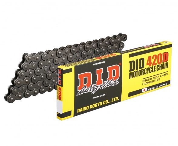 Łańcuch napędowy DID420D-98 Honda C 50 C 70 C 90 firmy D.I.D, czyli japońska firma DAIDO KOGYO, założona w 1933 roku, to jeden z najbardziej renomowanych producentów łańcuchów napędowych na świecie. Łańcuchy D.I.D są montowane fabrycznie przez większość renomowanych producentów motocykli, głównie japońskich. Firma produkuje także łańcuchy rozrządu do samochodów, łańcuchy przemysłowe, a także felgi motocyklowe. Łańcuchy napędowe D.I.D mają najwyższą wytrzymałość na rozciąganie, twardość powierzchniową oraz precyzję wykonania, a znajdujący się w ofercie firmy X-ring jest łańcuchem o największej odporności na zużycie eksploatacyjne w porównaniu z jakimkolwiek innym łańcuchem O-ringowym, posiadającym najmniejsze opory tarcia.